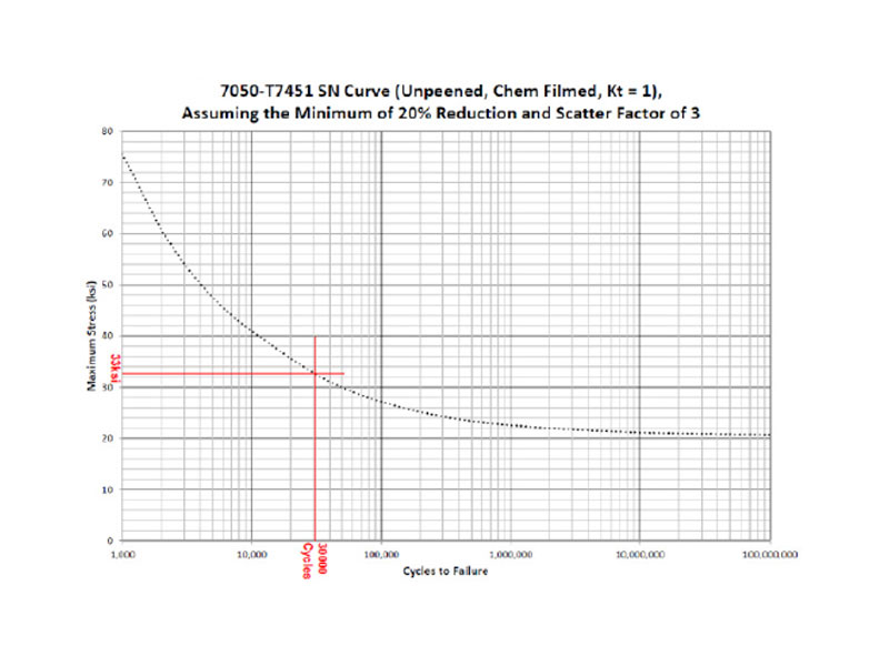 The principal structural elements of the beam are made from Aluminium Alloy 7050-T7451 (AMS 4050) and reference to appropriate S~N curves enabled the determination of the maximum stress to achieve a safe life of 30000 cycles.