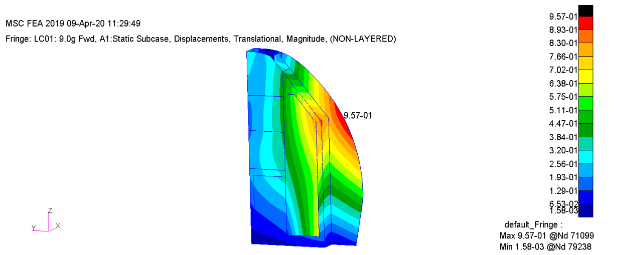 The strength of the panels was processed using the MSC software. panel facings were checked against the Tsai-Hill composite failure citron. The panel NOMEX core was checked through-thickness shear using HEXEL allowables.