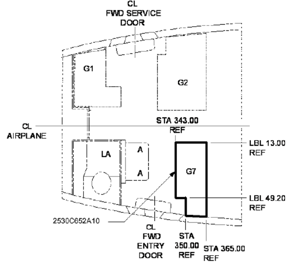 Items of mass like emergency equipment and stowage accessories were assessed separately to ensure adequate retention.